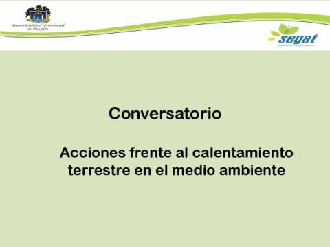 Esta presentación fue realizada por el Dr. Leopoldo Marcos Gutiérrez Vargas, Gerente de Gestión Ambiental del SEGAT, en el Conversatorio "Acciones frente al Calentamiento Terrestre” que se llevó a cabo el día viernes 27 de Enero en el Auditorio del Colegio de Ingeniero de La Libertad, organizado por el SEGAT, y con apoyo de la Empresa Privada CENITEG SOLUTIONS SAC y el Colegio de Ingenieros del Perú – Concejo Departamental de La Libertad (Capítulo de Ingenieros Geólogos, Mineros, Metalurgistas y de Materiales).