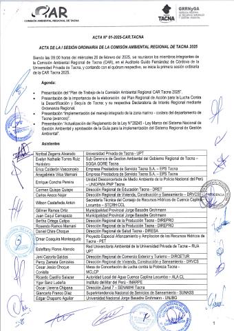 Acta de la I sesión ordinaria de la Comisión Ambiental Regional de Tacna 2025