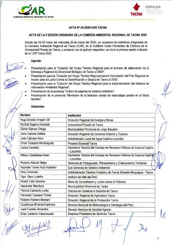 Acta de la II sesión ordinaria de la Comisión Ambiental Regional de Tacna 2025