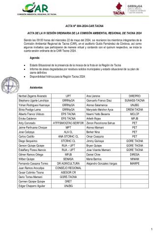 Acta de la IV sesión ordinaria de la Comisión Ambiental Regional de Tacna 2024