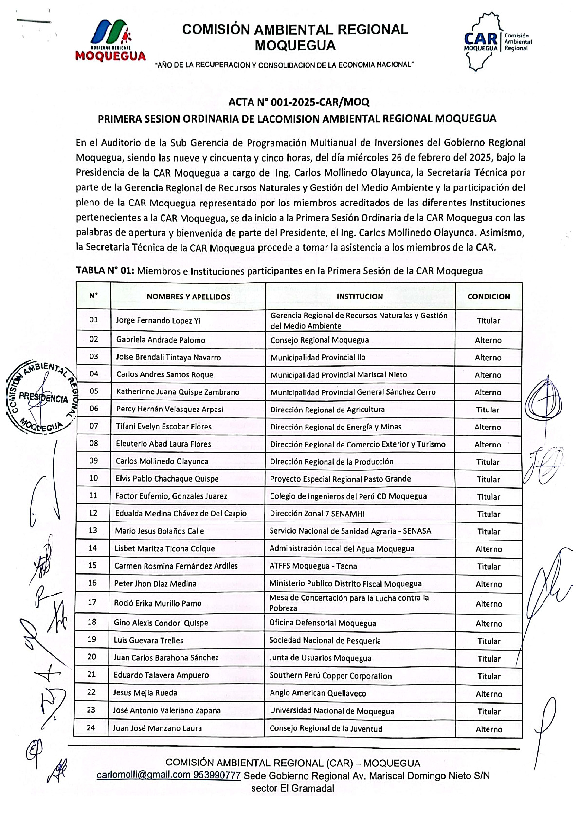 ACTAS 2025 DE LA COMISION AMBIENTAL REGIONAL - CAR MOQUEGUA