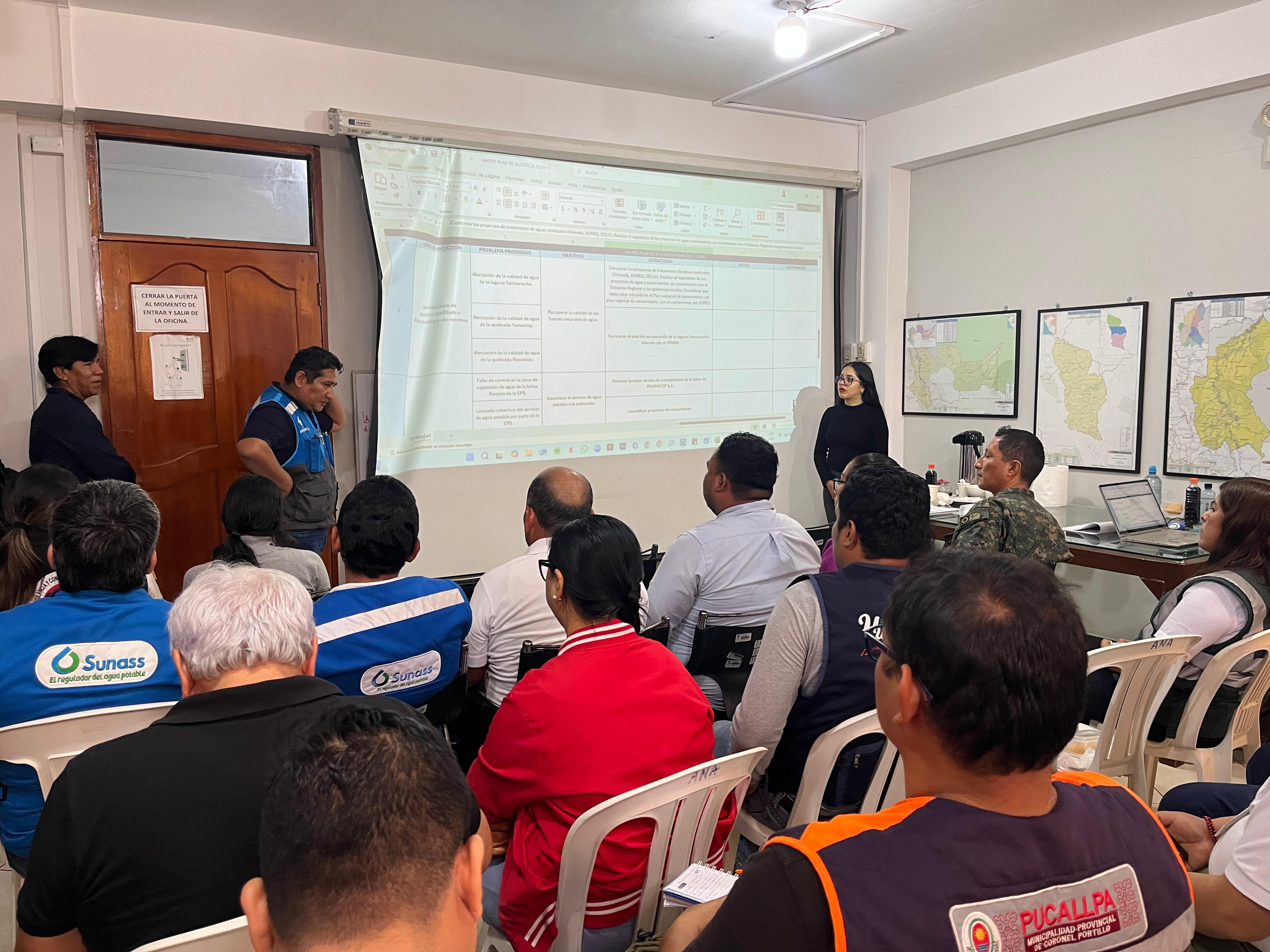 articiparon los representantes de la Municipalidad Provincial de Coronel Portillo, SUNASS, la Dirección Regional de Vivienda y Saneamiento, y el Ministerio de Vivienda, Construcción y Saneamiento, entre otras instituciones clave.