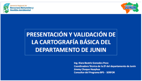 De acuerdo al protocolo de elaboración de la Cartografía Básica (CB) en el marco de la Zonificación Forestal (ZF), con fecha jueves 20 de noviembre del 2025, se realizó la presentación de contenidos de la Cartografía Básica del departamento de Junín a los integrantes del Comité Técnico de Zonificación Forestal de Junín de acuerdo al protocolo Metodología para la elaboración de la Cartografía Básica en el marco de la Zonificación. La coordinación de la Zonificación Forestal del departamento de Junín, quién lidera el Equipo Técnico de Zonificación Forestal, da por concluida la actualización de la Cartografía Básica del departamento de Junín, cumpliendo con la socialización a sus miembros.