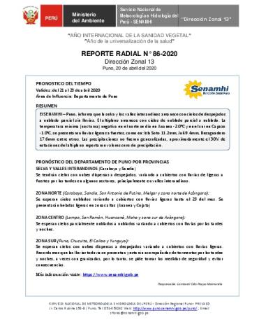 Boletín Diario del 20 de abril del 2020_SENAMHI_Puno
