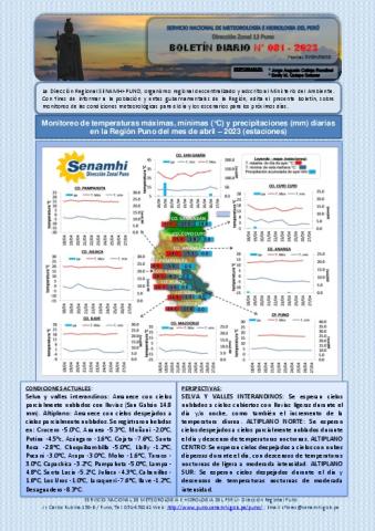 BOLETIN HIDROMETEOROLOGICO DIARIO DE LA REGION DE PUNO PARA EL 27 DE ABRIL DEL 2023.