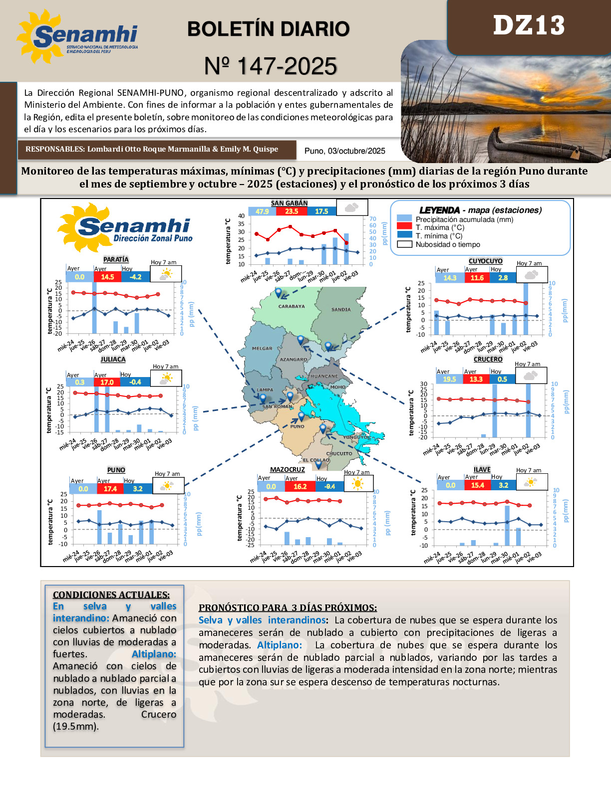 BOLETÍN HIDROMETEOROLÓGICO DIARIO DE LA REGIÓN DE PUNO PARA EL 03 de OCTUBRE DE 2025