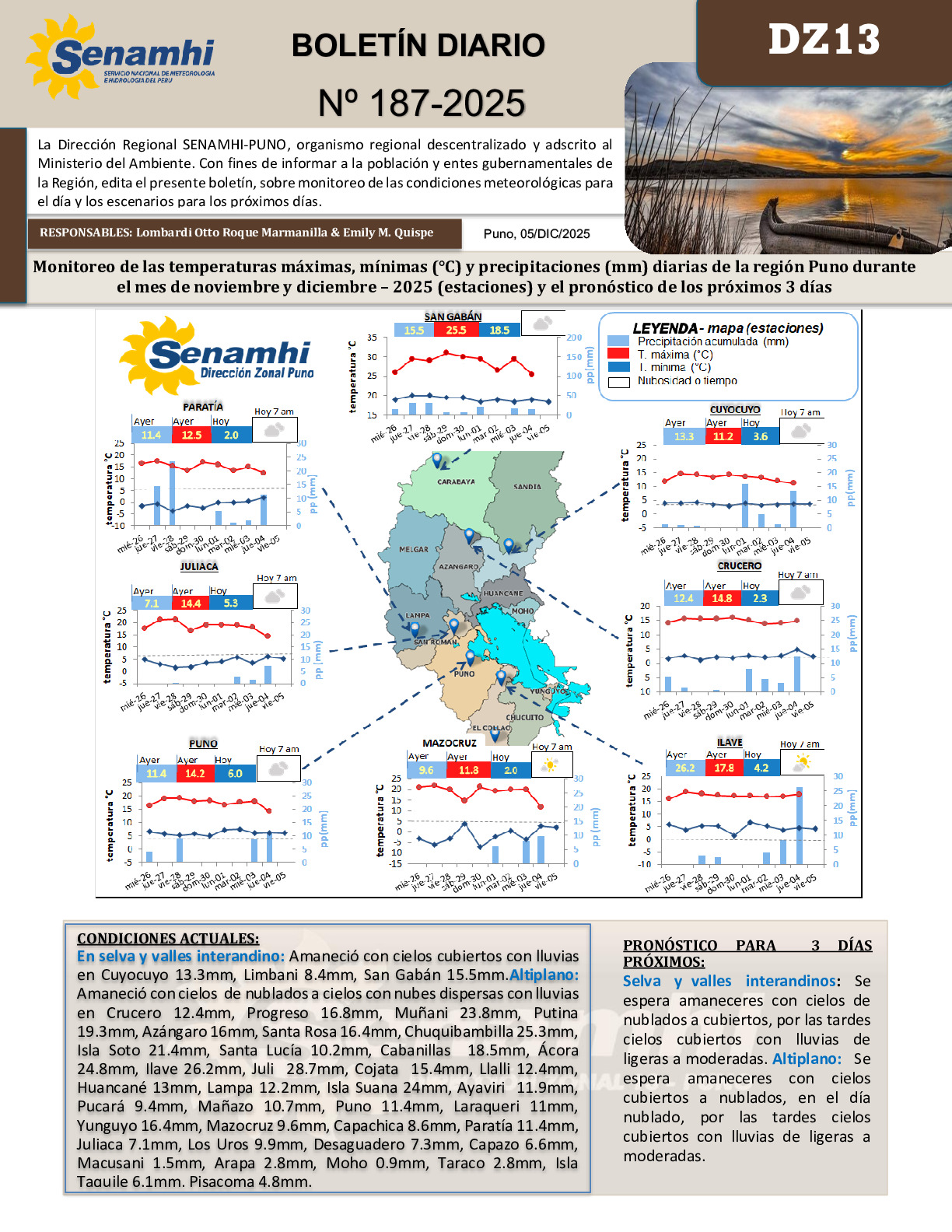 BOLETIN HIDROMETEOROLOGICO DIARIO DE LA REGION DE PUNO PARA EL 05 DE DICIEMBRE DE 2025