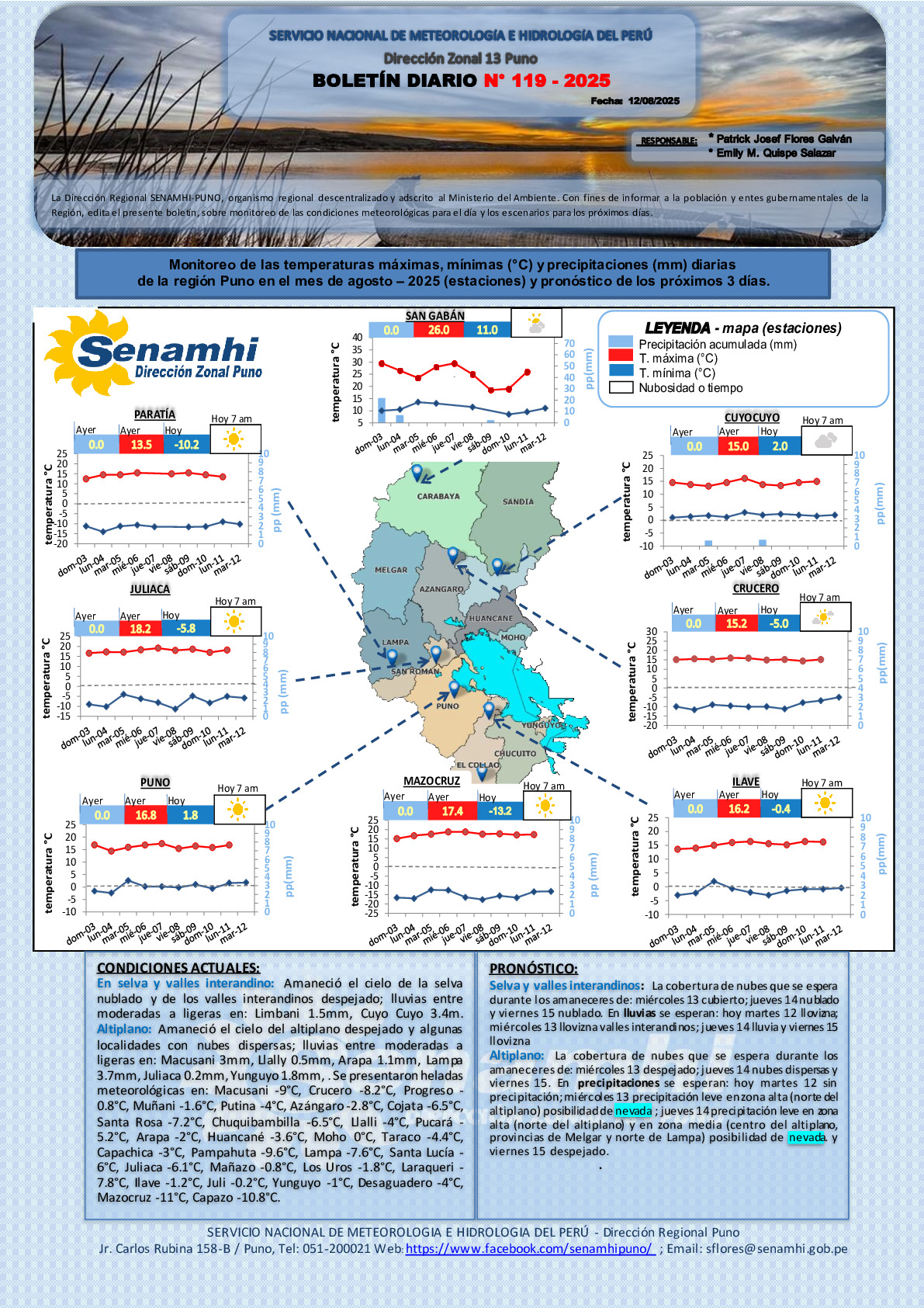 BOLETÍN HIDROMETEOROLÓGICO DIARIO DE LA REGIÓN DE PUNO PARA EL 12 DE AGOSTO DE 2025