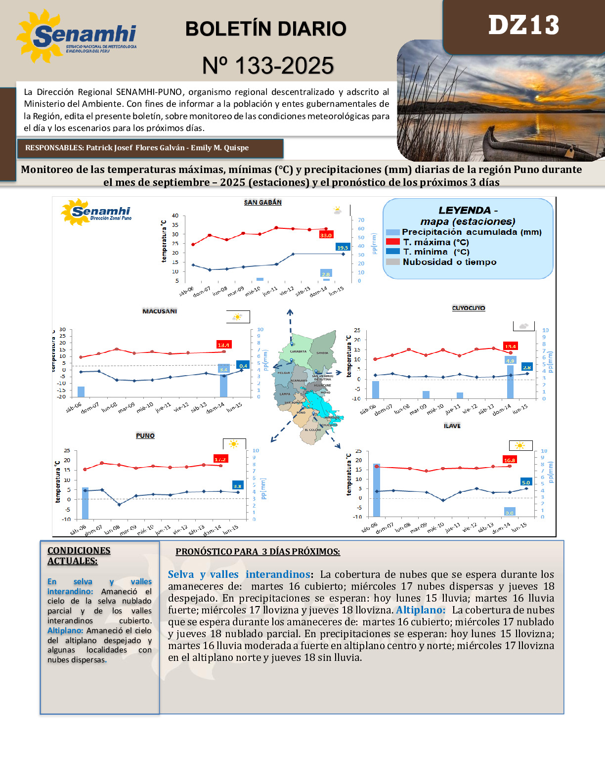 BOLETIN HIDROMETEOROLOGICO DIARIO DE LA REGION DE PUNO PARA EL 15 DE SEPTIEMBRE DE 2025
