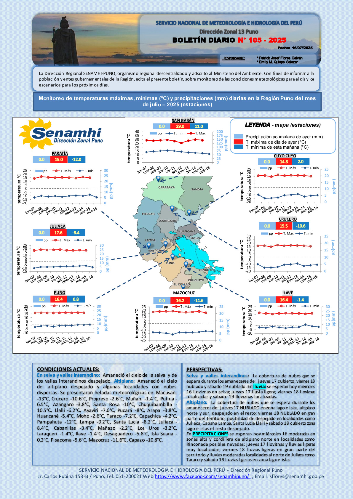 BOLETÍN HIDROMETEOROLÓGICO DIARIO DE LA REGIÓN DE PUNO PARA EL 16 julio 2025