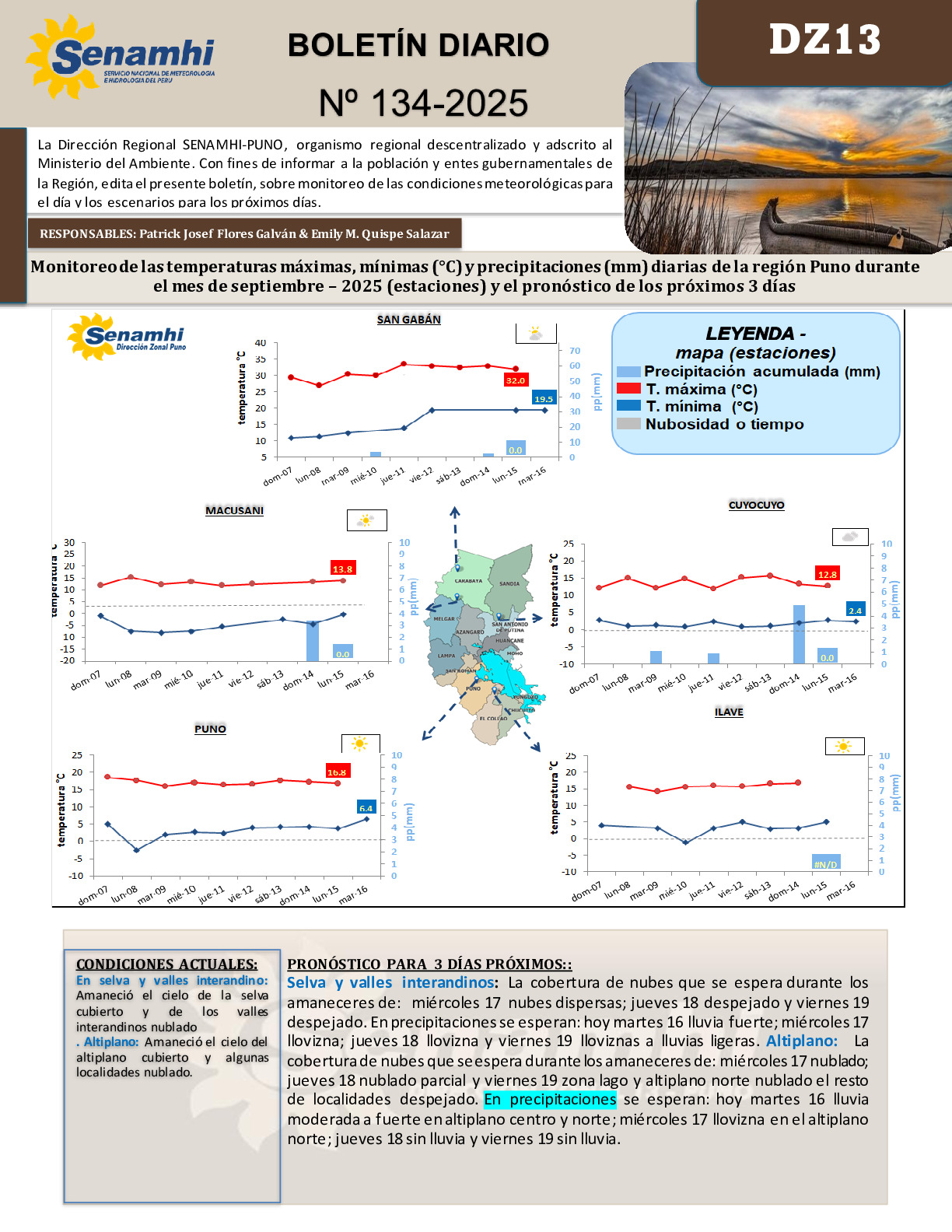 BOLETÍN HIDROMETEOROLÓGICO DIARIO DE LA REGIÓN DE PUNO PARA EL 16 DE SEPTIEMBRE DE 2025