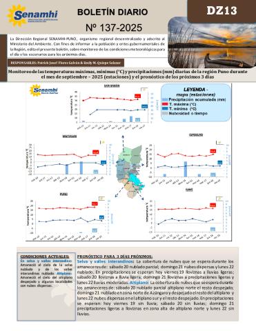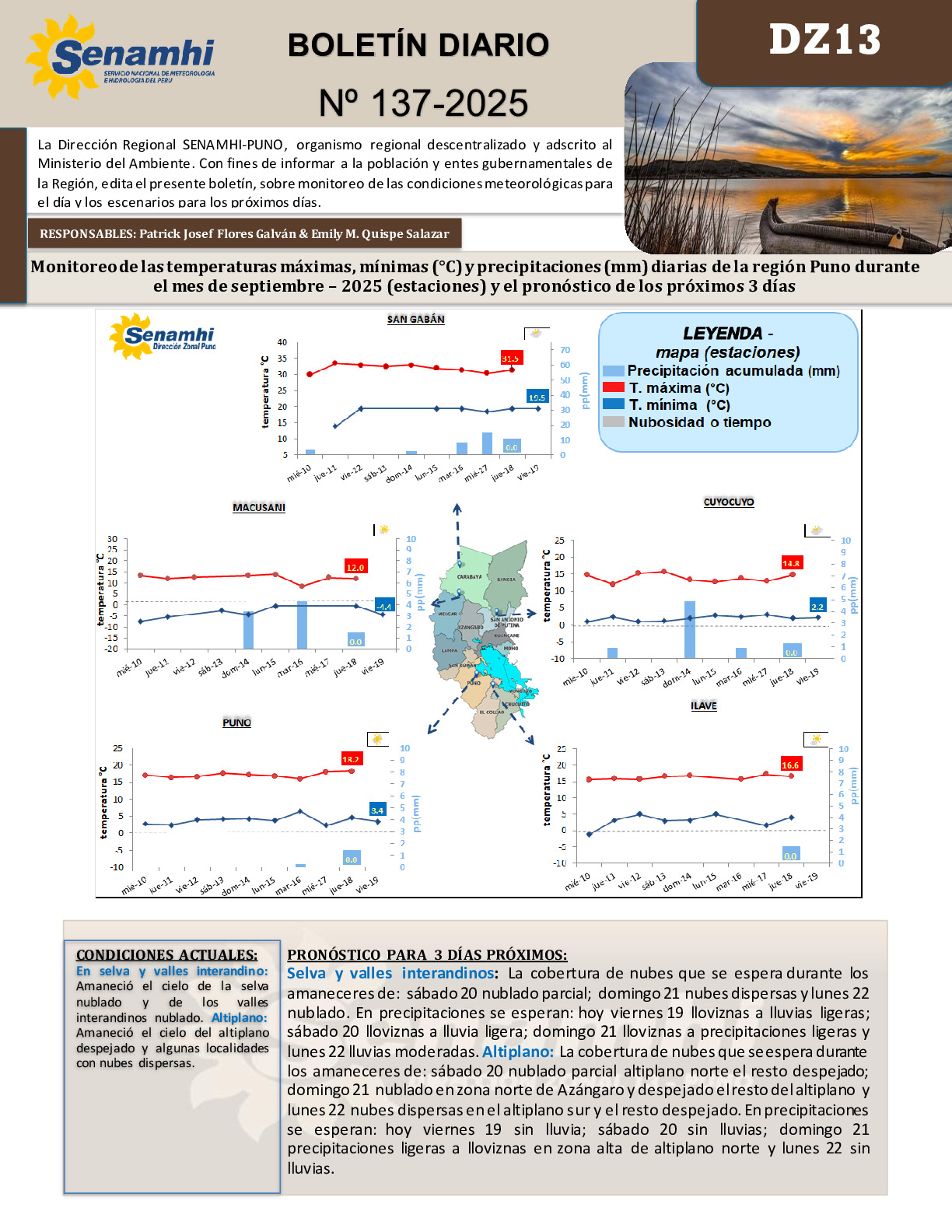 BOLETIN HIDROMETEOROLOGICO DIARIO DE LA REGION DE PUNO PARA EL 19 DE SEPTIEMBRE DE 2025