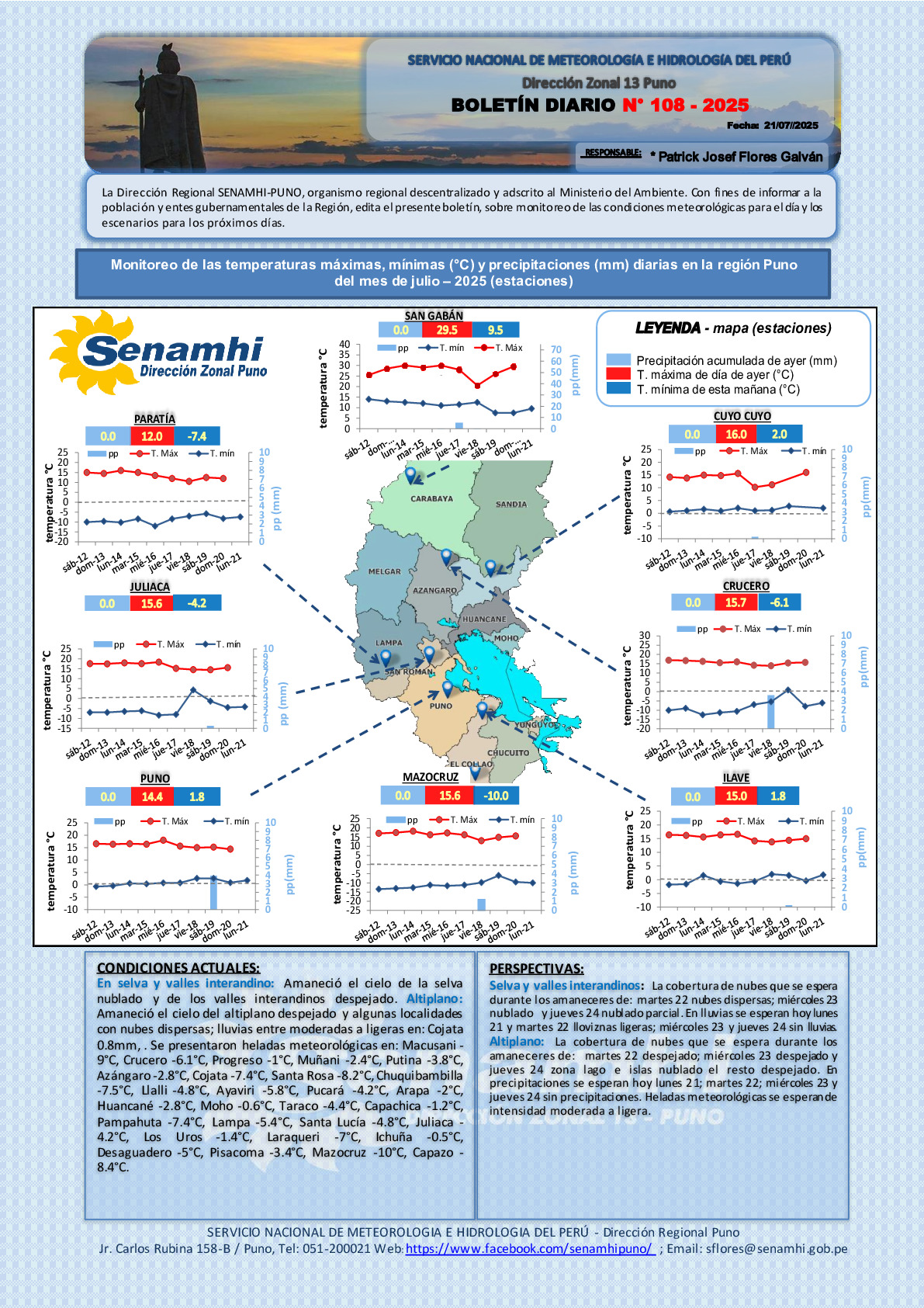BOLETÍN HIDROMETEOROLÓGICO DIARIO DE LA REGIÓN DE PUNO PARA EL 21 julio 2025