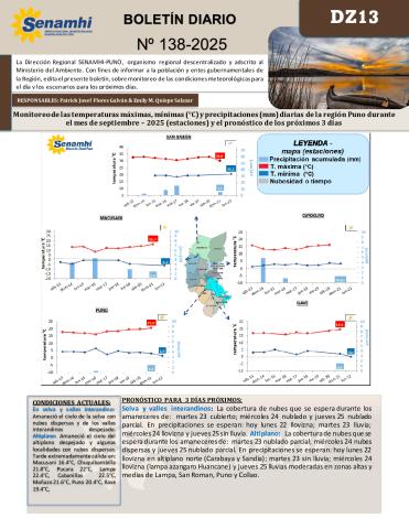 BOLETIN HIDROMETEOROLOGICO DIARIO DE LA REGION DE PUNO PARA EL 22 DE SEPTIEMBRE DE 2025
