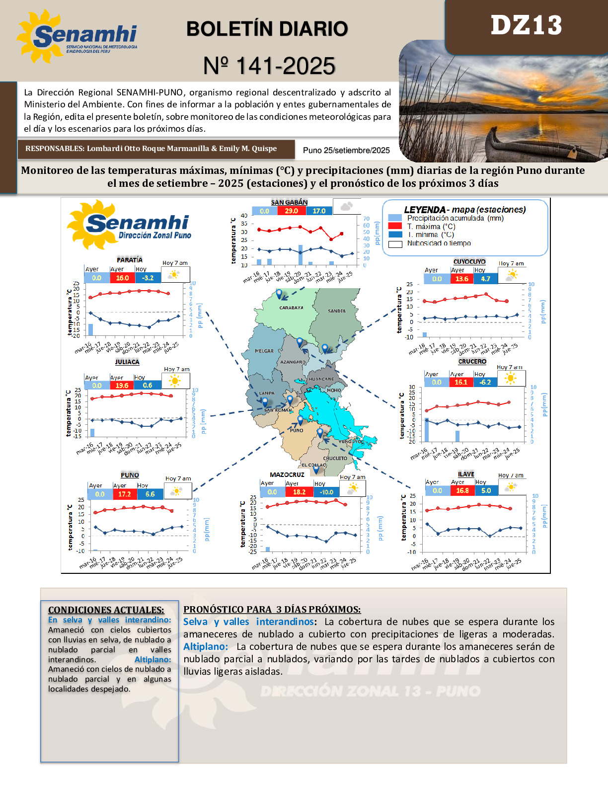 BOLETIN HIDROMETEOROLOGICO DIARIO DE LA REGION DE PUNO PARA EL 25 DE SEPTIEMBRE DE 2025