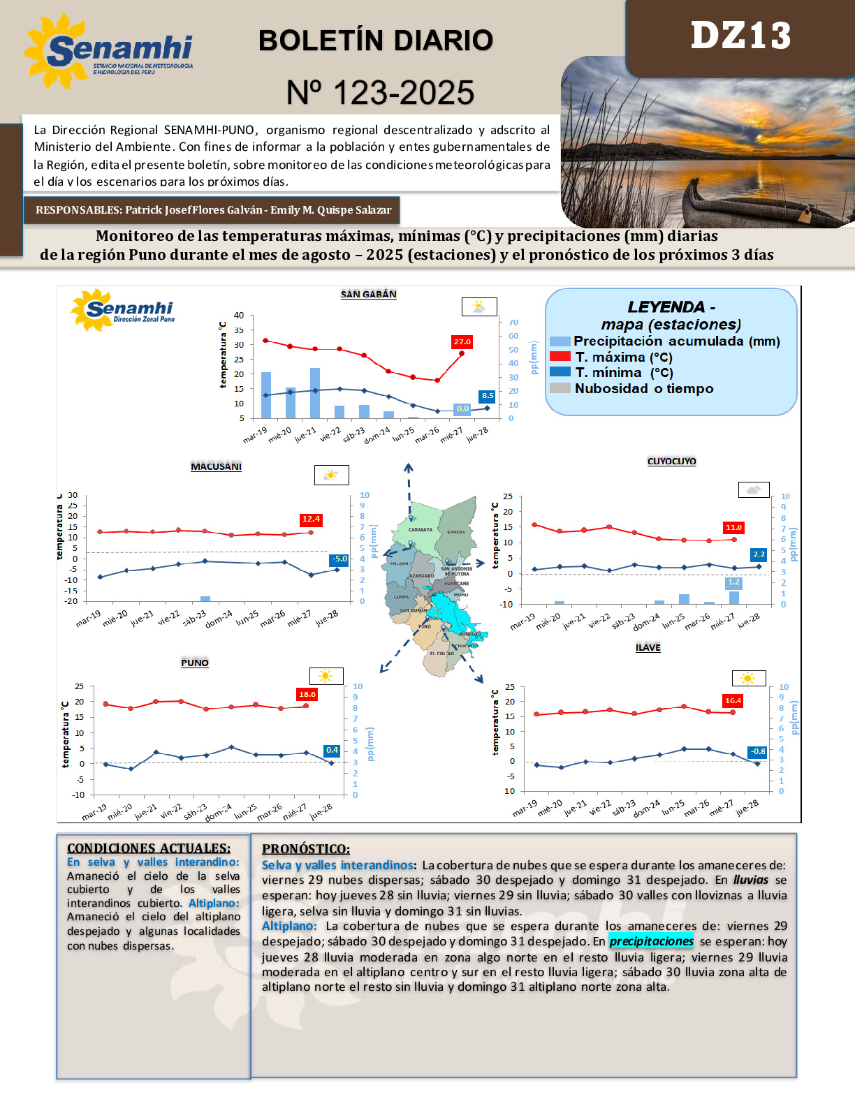BOLETÍN HIDROMETEOROLÓGICO DIARIO DE LA REGIÓN DE PUNO PARA EL 28 de agosto de 2025