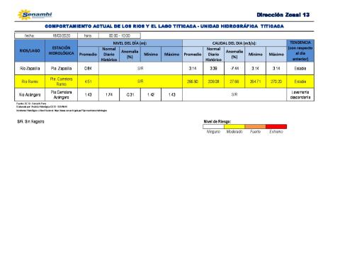 comportamiento actual de los cuerpos de agua UH Titicaca 18/03/2020 (00:00 - 10:00)