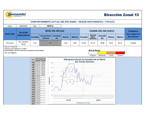 COMPORTAMIENTO ACTUAL DEL RÍO RAMIS - UNIDAD HIDROGRÁFICA TITICACA 29/04/2020