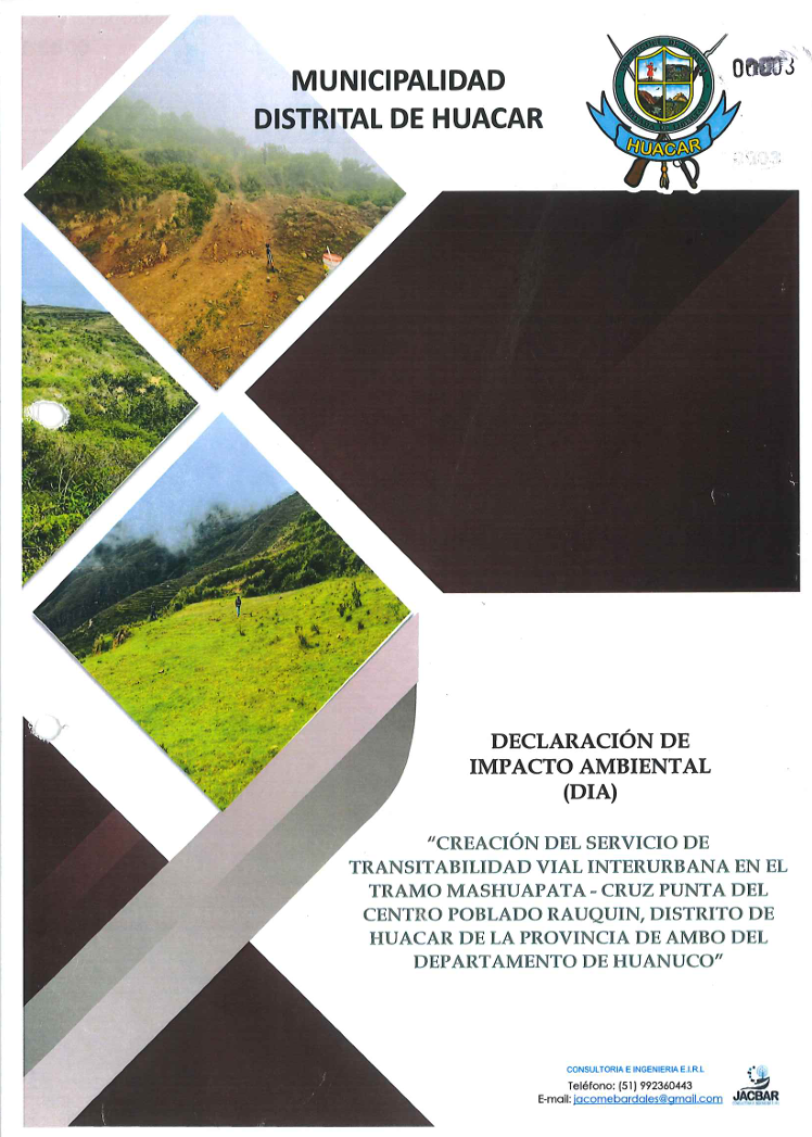 Elaborar un Instrumento de Gestión Ambiental que permita Identificar y caracterizar los impactos ambientales y socio económicos que pudieran derivarse de la implementación del proyecto: "CREACIÓN DE CAMINO VECINAL TRAMO ARANCAY - MAGANPATAY DEL DISTRITO CREACIÓN DEL SERVICIO DE TRANSITABILIDAD VIAL INTERURBANA EN EL TRAMO MASHUAPATA CRUZ PUNTA DEL CENTRO POBLADO RAUQUIN, DISTRITO DE HUACAR DE LA PROVINCIA DE AMBO DEL DEPARTAMENTO DE HUANUCO", CON CUI N° 2649194, en los medios: físico, biológico y socio económico, especificando medidas para prevenir, mitigar, corregir o compensar los impactos negativos.