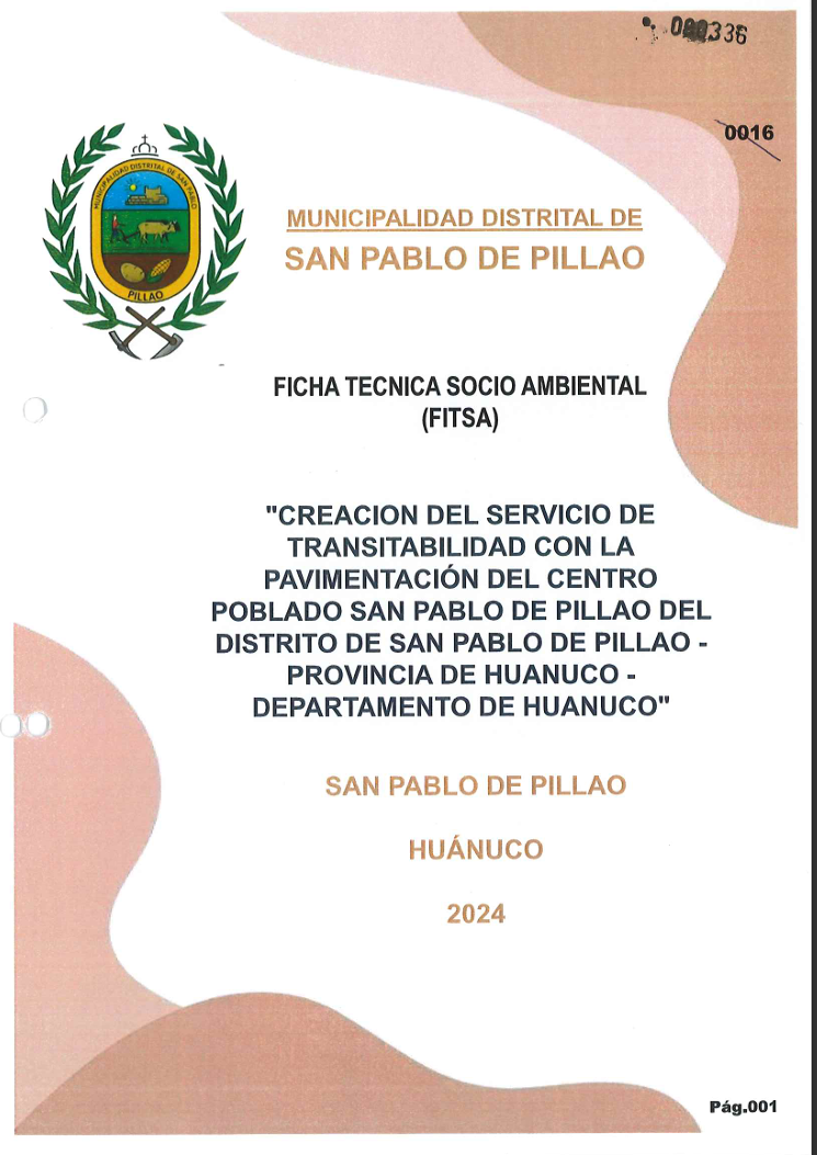 "Creación del servicio de transitabilidad con la pavimentación del centro Poblado San pablo de Pillao del distrito de San Pablo de Pillao-provincia de Huánuco - departamento de Huánuco"