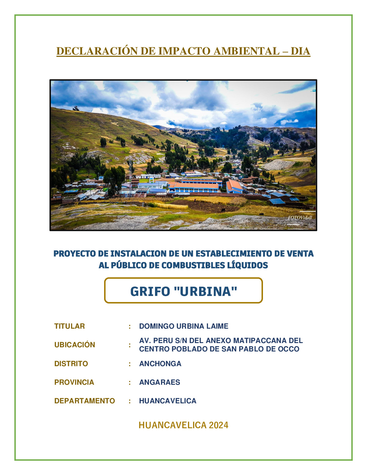 Declaración de Impacto Ambiental del Proyecto “Instalación de un Establecimiento de Venta al Público de Combustibles Líquidos”