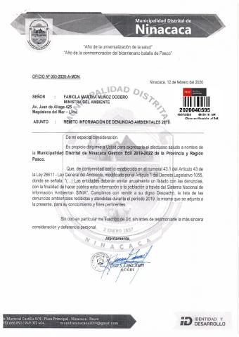 Denuncias ambientales 2019 Municipalidad Distrital Ninacaca