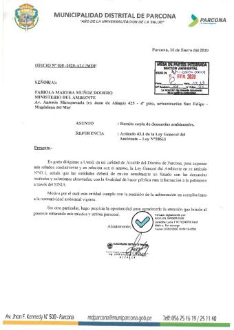 Denuncias ambientales 2019 Municipalidad Distrital de Parcona