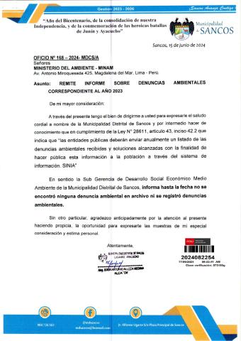 Denuncias ambientales del año 2023 de la Municipalidad Distrital de Sanco - Ayacucho