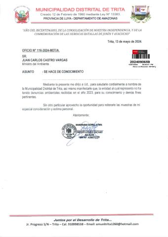 Denuncias atendidas por la municipalidad distrital de Trita 2023