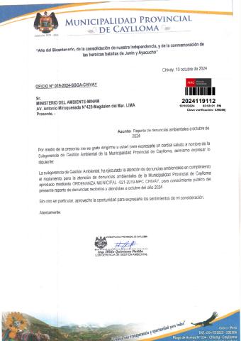 Denuncias atendidas por la municipalidad provincial de Caylloma 2024