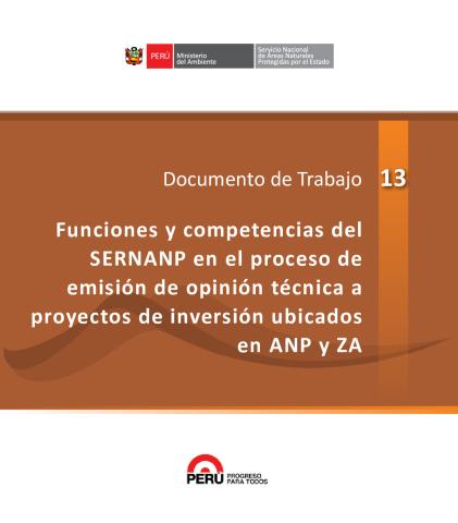 Documento de Trabajo 13: Funciones y competencias del SERNANP en el proceso de emisión de opinión técnica a proyectos de inversión ubicados en áreas naturales protegidas y zona de amortiguamiento.
