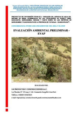 EVALUACIÓN AMBIENTAL PRELIMINAR – EVAP DEL PIP: “CREACIÓN DEL SERVICIO DE AGUA DEL SISTEMA DE RIEGO HUARMICOCHA EN LAS LOCALIDADES DE PUEBLO LIBRE, SACHACOTO, SURCUBAMBA, SOCCOS Y SANTA MARÍA EN LOS DISTRITOS DE SURCUBAMBA Y HUACHOCOLPA DE LA PROVINCIA DE
