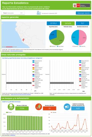 Los reportes estadísticos ambientales departamentales (Dossiers) son documentos de síntesis que contienen datos generales, así como la información estadística más importante sobre la presencia del sector ambiente en los departamentos del Perú, con la finalidad de servir como una herramienta que brinda información de calidad, oportuna y clara sobre el estado del ambiente y los recursos naturales con la finalidad que puedan ser utilizados en los procesos de gestión ambiental y alertar sobre posibles problemas ambientales.