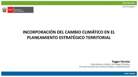 Esta presentación se lleva a cabo en el taller: Elaboración del Plan de implementación – Estrategia Regional de Cambio Climático de La Libertad, los días lunes 30 y martes 31 de Octubre en el Auditorio del Centro Regional de Capacitación (PROIND), por el Ing. Rogger Morales de la Dirección General de Cambio Climático y Desertificación del Ministerio del Ambiente.