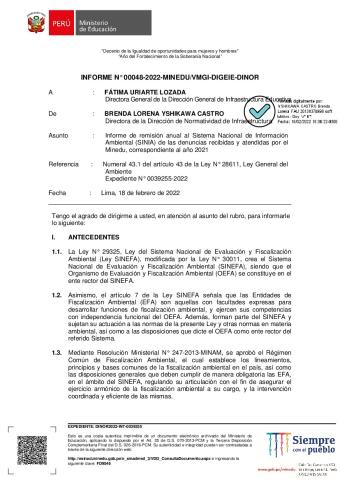 Informa respecto a las denuncias recibidas y atendidas por el MINEDU, correspondiente al 2021