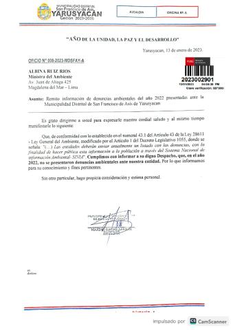 Informacion de denuncias ambientales atendidas del periodo 2022 Municipalidad Distrital de San Francisco de Asis Yarusyacan