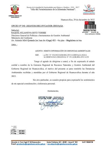 Informacion de denuncias ambientales correspondientes al año 2022 del Gogierno Regional de Huancavelica