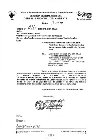 Informe de Evaluación de la perdida de bosque mediante las alertas tempranas de Deforestación, en el periodo enero a marzo 2025, en el departamento de Loreto