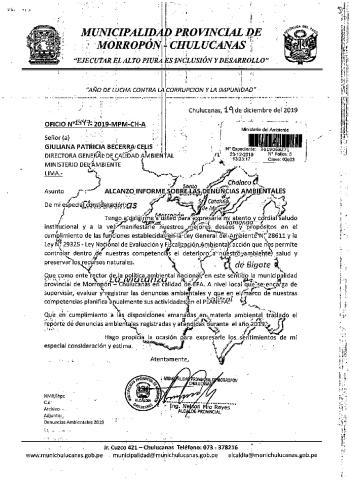 Informe sobre las denuncias ambientales 2019 Municipalidad Provincial de Morropón
