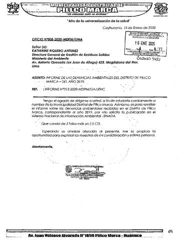 INFORME DE LAS DENUNCIAS AMBIENTALES DEL DISTRITO DE PILLCO MARCA DEL AÑO 2019