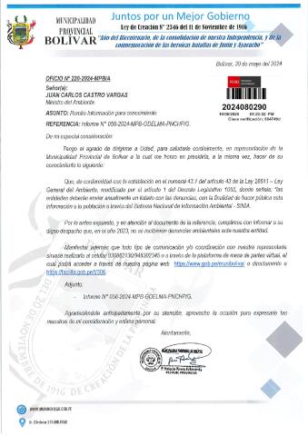 Informe sobre reporte de denuncias ambiental es anuales 2023 Municipalidad Provincial de Bolivar
