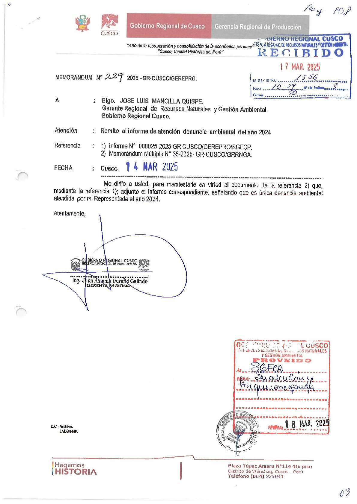 Informe sobre reporte de denuncias ambiental es anuales 2024 Gobierno Regional de Cusco