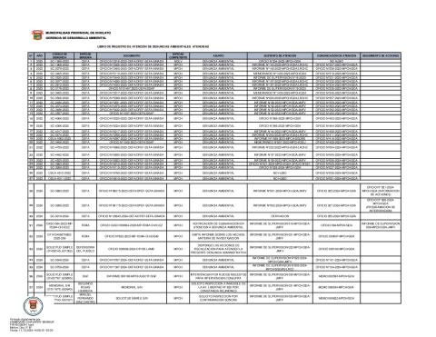 En cumplimiento de lo establecido en el Decreto Legislativo N° 1055 que modifica el artículo 43° de la Ley N° 28611, que indica que "Las entidades deberán enviar anualmente un listado con las denuncias recibidas y soluciones alcanzadas, con la finalidad de hacer pública esta información a la población a través del SINIA".