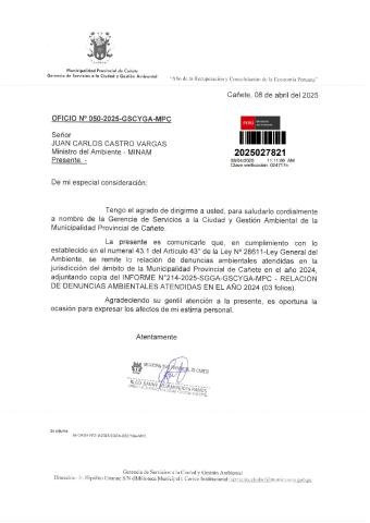 Informe sobre reporte de denuncias ambiental es anuales 2024 Municipalidad Provincial de Cañete