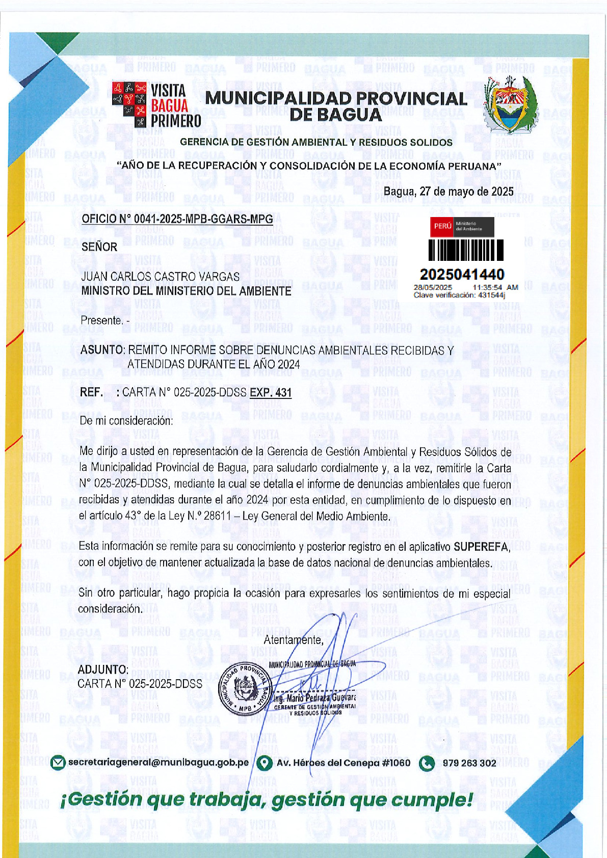 Informe sobre reporte de denuncias ambiental es anuales 2024 Municipalidad Provincial de Bagua