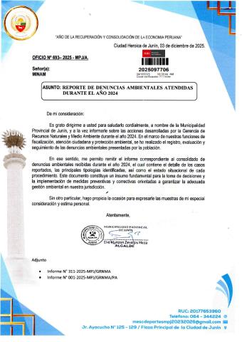 Informe sobre reporte de denuncias ambiental es anuales 2024 Municipalidad Provincial de Junin