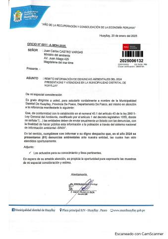 Informe sobre reporte de denuncias ambiental es anuales 2024 Municipalidad Distrital de Huayllay