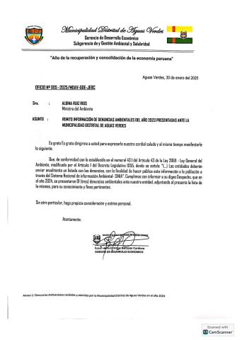 Informe sobre reporte de denuncias ambiental es anuales 2024 Municipalidad Distrital de Aguas Verdes