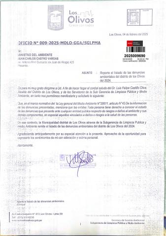 Informe sobre reporte de denuncias ambiental es anuales 2024 Municipalidad Distrital de Los Olivos