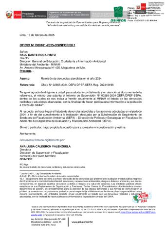 Informe sobre reporte de denuncias ambiental es anuales 2024 Osinfor